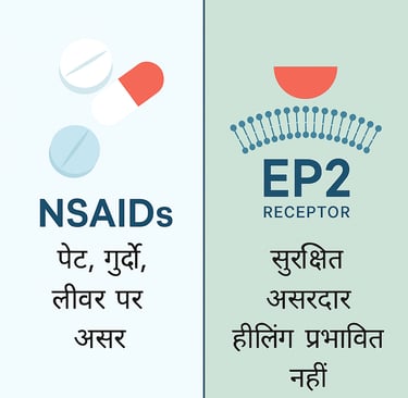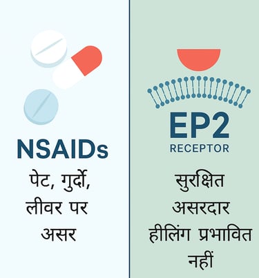 EP2 रिसेप्टर को ब्लॉक करने से दर्द कम होता है, सूजन और हीलिंग पर कोई असर नहीं।